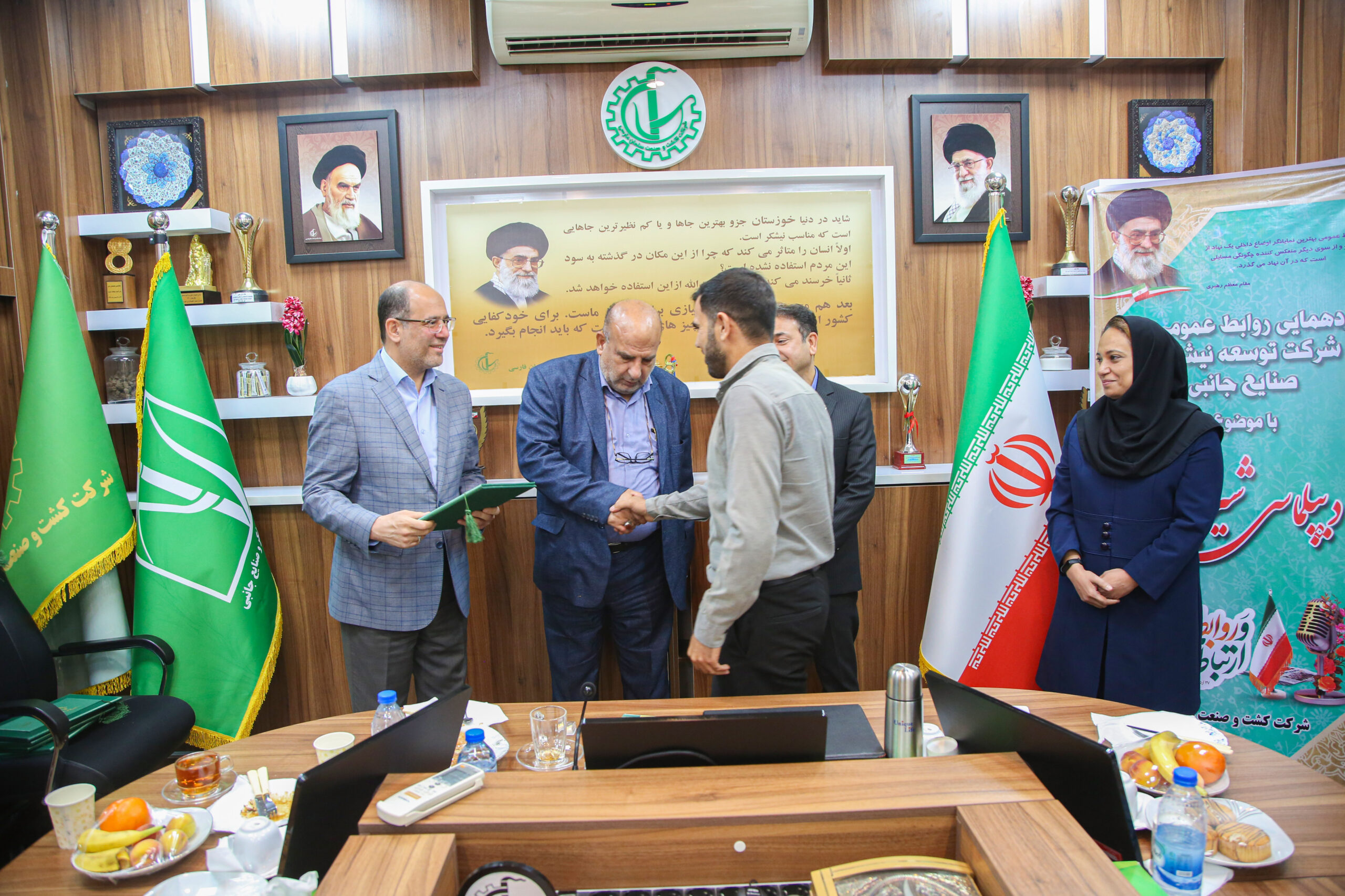 در پایان مراسم، با حضور دکتر ناصری مدیرعامل شرکت توسعه نیشکر و صنایع جانبی، از روابطعمومی کشت و صنعتهای نیشکری و شرکتهای تابعه با اهدای لوح سپاس، قدردانی شد.