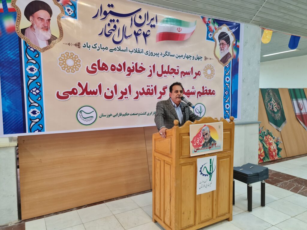 مدیرکل بنیاد حفظ آثار و نشر ارزش های دفاع مقدس خوزستان در مراسم تکریم خانواده شهدا و ایثارگران، ضمن تبریک ایام‌الله دهه فجر و ولادت باسعادت مولای متقیان، صنعت نیشکر را شرکتی در خط‌مقدم نبرد با دشمن برشمرد که با تولید محصولات استراتژیک در مسیر خودکفایی کشور قدم برداشته است.