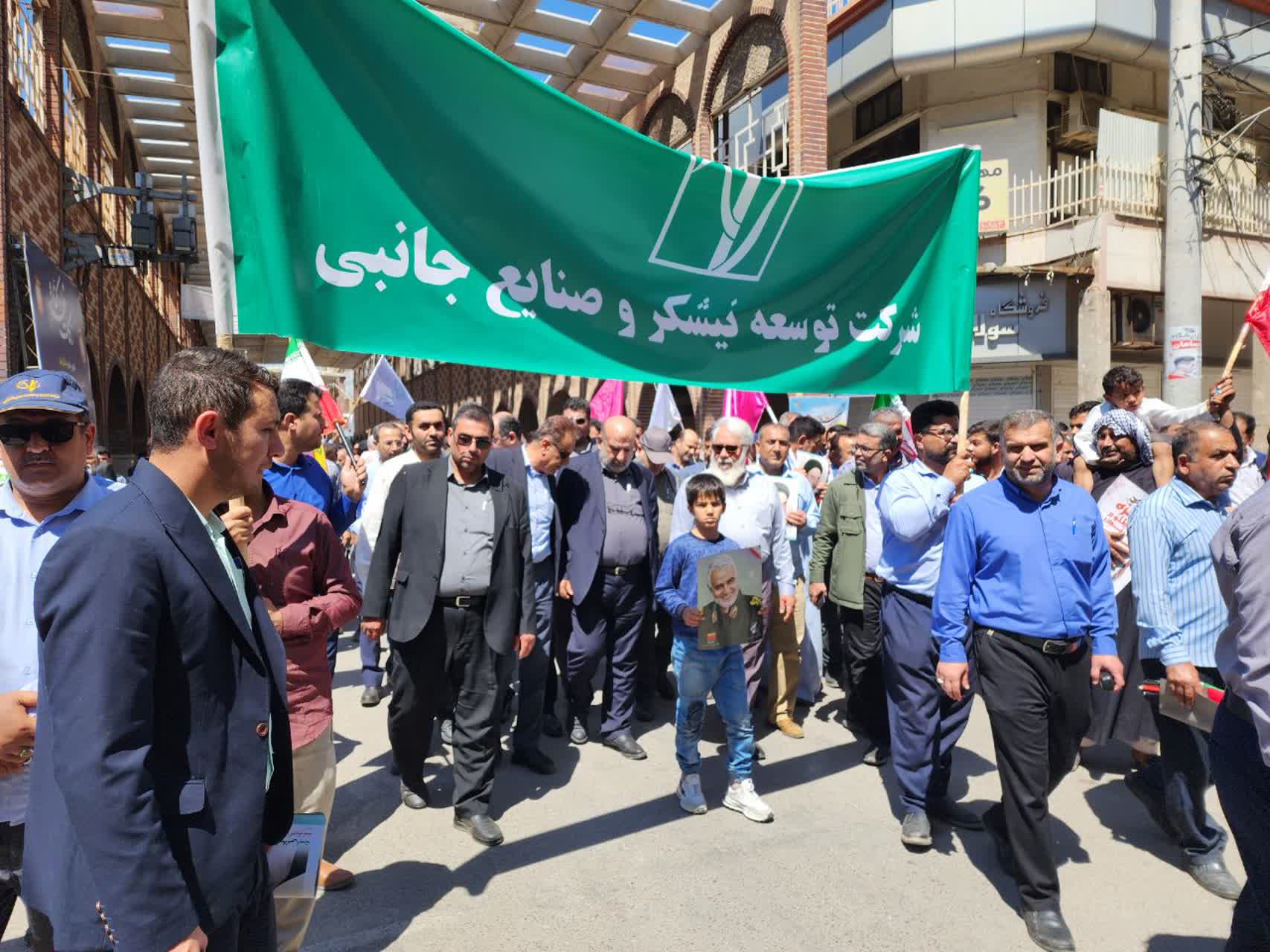 حضور پرشور اهالی شکرستان همگام با ملت سلحشور ایران در راهپیمایی روز جهانی قدس، بار دیگر ثابت کرد که مردم، همواره پشتیبان مظلومان جهان هستند. نیشکری‌ها با این حضور، نشان دادند که همیشه در خط اوّل‌اند و خط‌شکن؛ چه در سنگر تولید، چه در میدان پاسداری از کیان ایران، و حالا هم در دفاع از فلسطین.