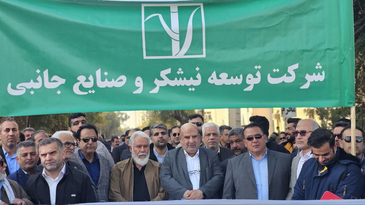 خانوادههای نیشکری، از کارگران و کارکنان تا مدیران، در صفوفی منسجم، پرچم سهرنگ ایران را در دست گرفته و با شعارهای پرطنین انقلابی، ارادت خود را به آرمانهای والای انقلاب به اثبات رساندند.