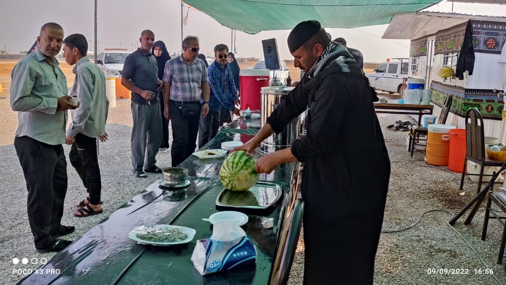 این شیفته‌گی به رهروان کربلا را می‌شود از همان ابتدای مسیر شلمچه دید. در ۴۵ کیلومتری جاده اهواز به آبادان، چند نفری با بیرق سیاه، ایستاده در کنار جاده، چشم به راه هستند و در هوای گرم و نم‌دار خوزستان، ساعت‌ها دست راست خود را به نشانه استقبال بالا برده‌اند تا زائری از راه برسد و اندکی در «موکب نیشکر» خستگی راه را به در کند.