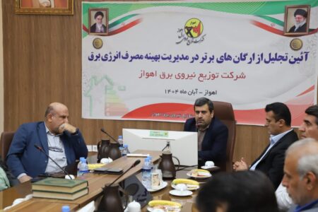 آیین تقدیر از دستگاه‌های برتر در مدیریت مصرف انرژی برق، چهارشنبه، ۲۸ آبان‌ماه، در سالن جلسات شرکت توزیع برق اهواز برگزار شد؛ مراسمی که با محوریت نقش‌آفرینی سازمان‌ها در پایداری شبکه، صرفه‌جویی و تولید انرژی همراه بود و در پایان، برترین دستگاه‌ها معرفی و تقدیر شدند.