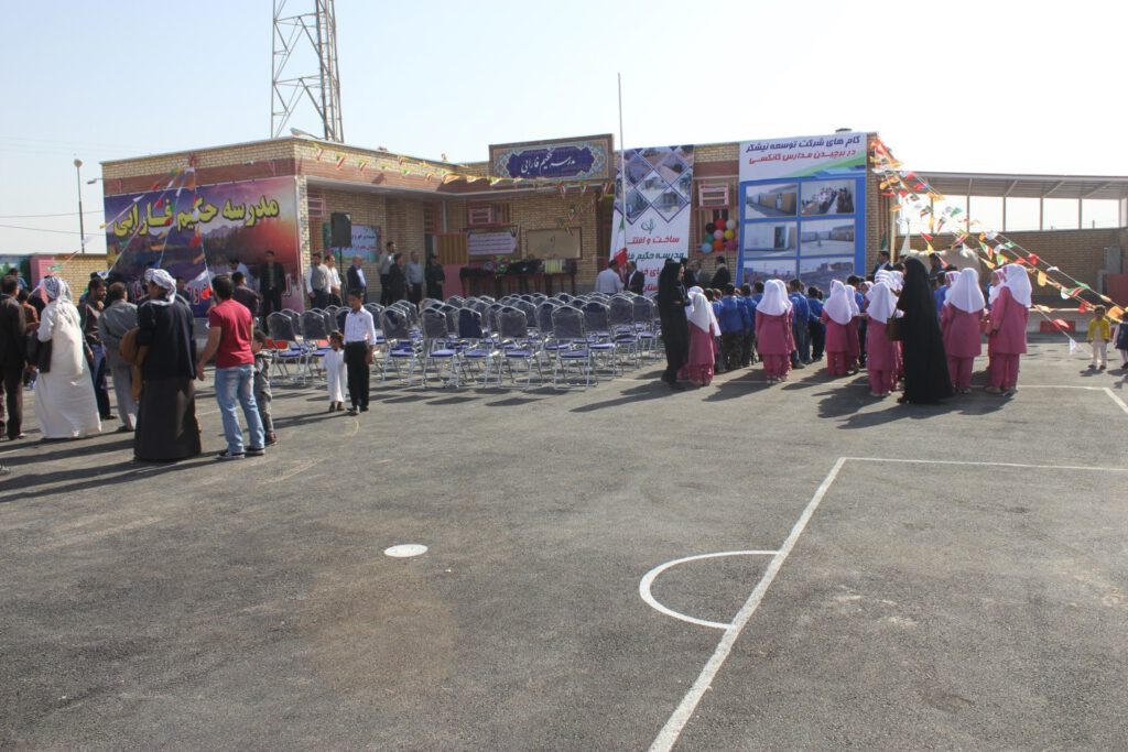 مدرسه حکیم فارابی یکی از ۱۴ مدرسه‌ای است که از سوی شرکت توسعه نیشکر و صنایع جانبی در روستاهای اطراف کشت و صنعت‌های نیشکر ساخته‌ شده؛ این شرکت با ساخت این مدارس و تجهیز آن، رسمِ همسایگی را به‌جا آورده است.