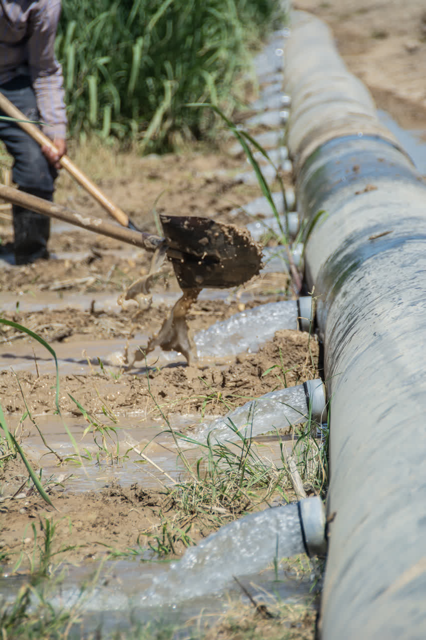 آبیاری مزارع نیز متناسب با فصلها، متفاوت است؛ ابراهیم رحیمی در این زمینه میگوید: این روزها که گرمای هوا زیاد است، آب نیز تبخیر بالایی دارد؛ بنابراین برای کاهش تبخیر، در طول شب نیز آبیاری انجام میشود. این زمان و دورههای آبیاری برای هر مزرعه توسط مدیریت مطالعات کاربردی تعیین میشود.