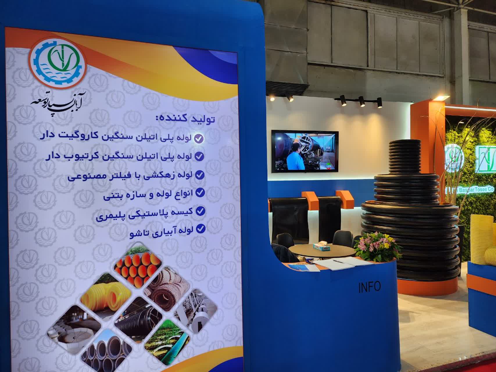 آبان‌بسپار توسعه نیشکر در این نمایشگاه، آخرین دستاوردها و نوآوری‌های خود را در زمینه لوله‌های زهکش، لوله‌های آبیاری پلاستیکی و پلی‌اتیلن، لوله‌های بتنی، بسته‌بندی و… به نمایش گذاشته است.