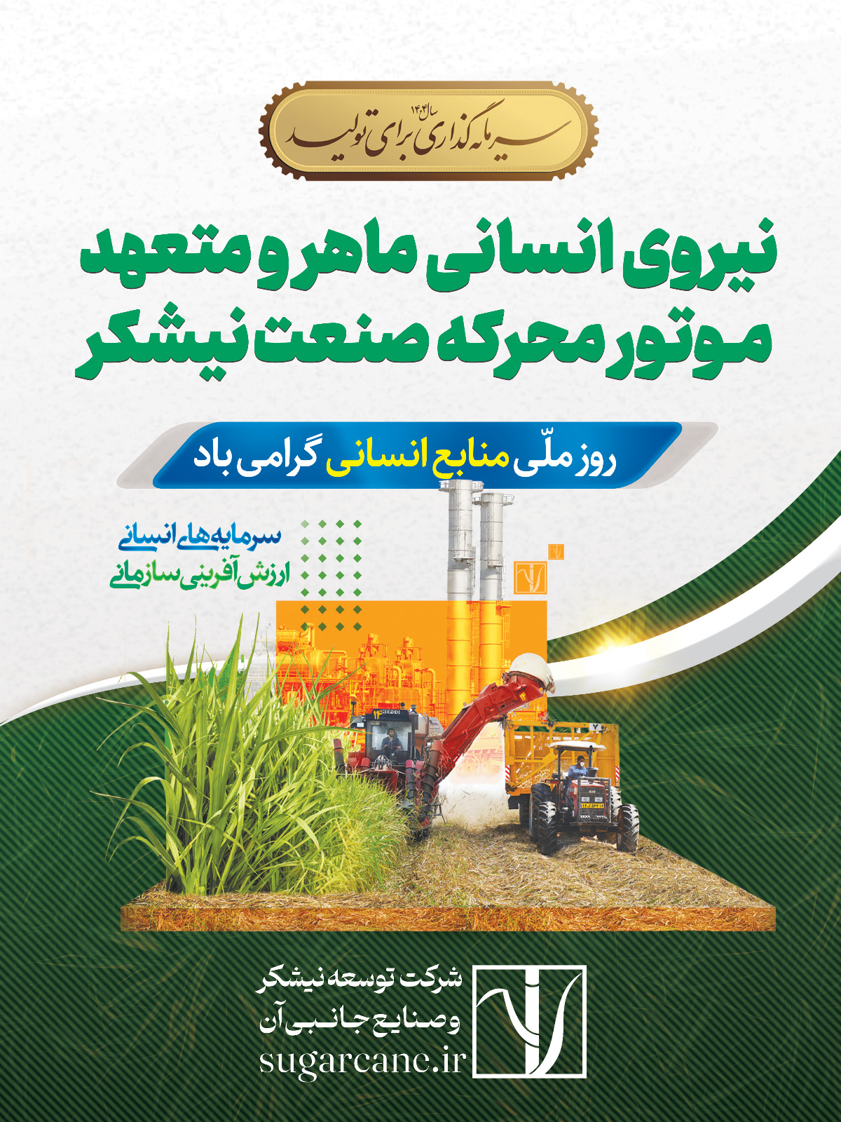 امروز، روزی است که آسمانِ سازمانمان را به یادِ ریشههایش تکریم میکنیم؛ ریشههایی که نه در خاک، که در جانِ تکتک شما همکاران عزیزان رخنه کرده است ."منابع انسانی"، این واژه مقدس، تنها یک عنوان نیست؛ نفسِ کشیدنِ سازمان است، ضربانهایی است که چرخهای صنعت نیشکر را به حرکت درمیآورد.