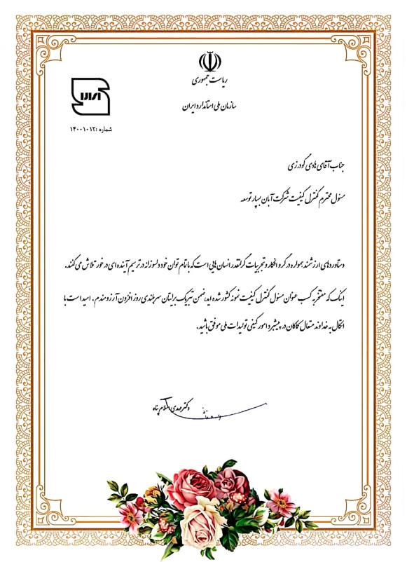 واحد کنترل کیفیت شرکت آبانبسپار توسعه از سوی سازمان ملی استاندارد نمونه کشوری شد.