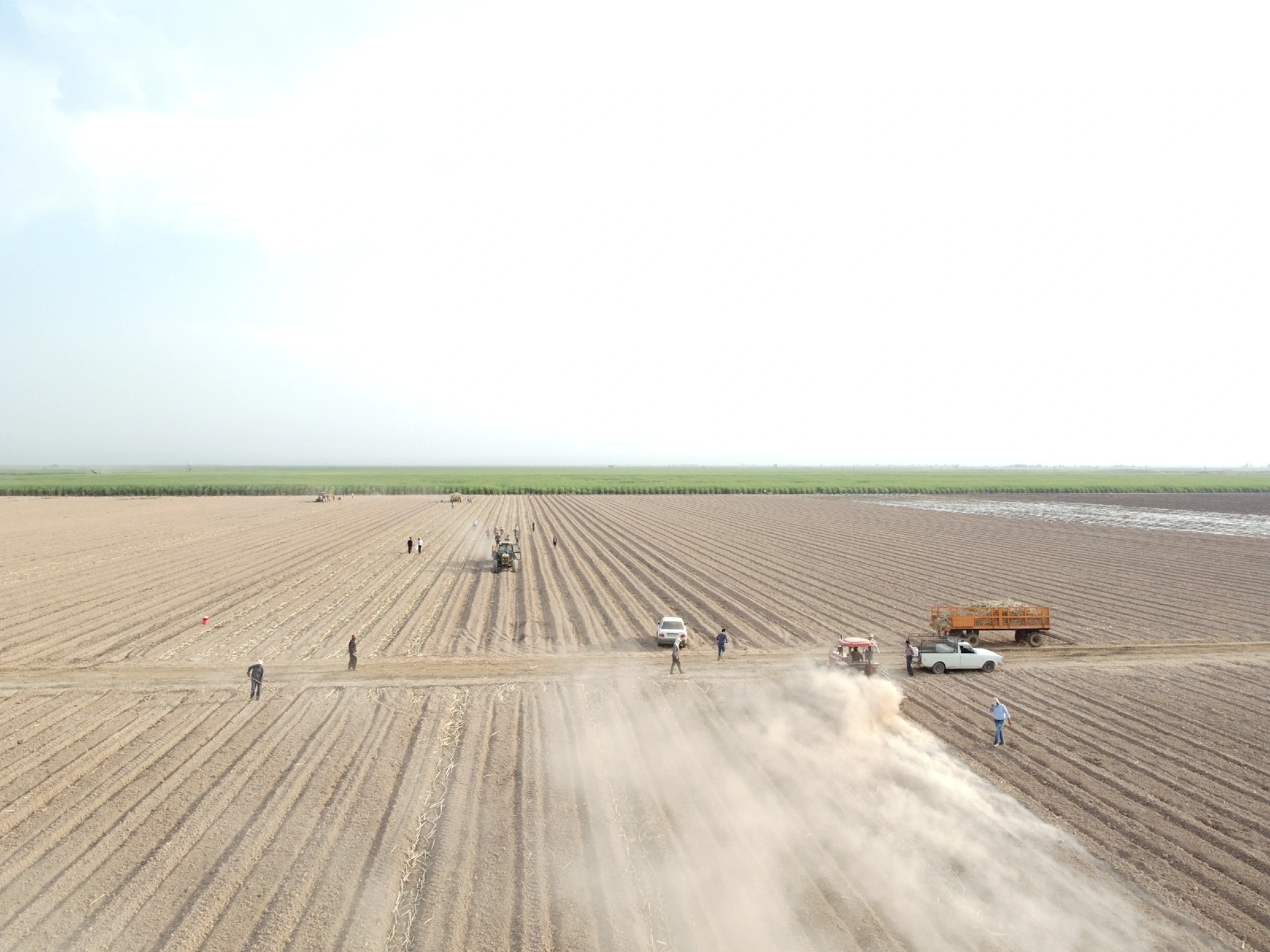 کشت نیشکر برعکس عملیات «داشت» و «برداشت» به صورت دستی و با تکیه بر توان و تجهیزات مناطق همجوار هشت کشت و صنعت نیشکری انجام میشود. البته در فرآیند تهیه قلمه، از ماشینآلات و تجهیزات کشاورزی استفاده میشود.